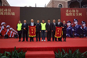 图为爱义物业参加布吉街道,水径社区组织的活动,荣获拔河比赛冠军,篮球比赛亚军颁奖典礼现场